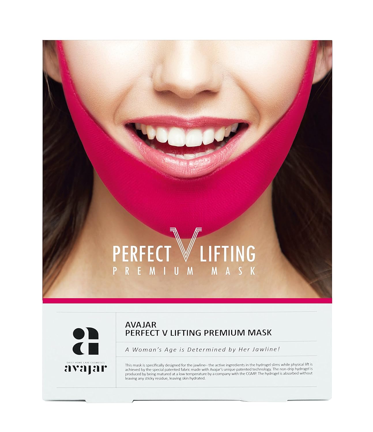 Achieve a firmer, V-shaped jawline with Avajar Perfect V-Lift Premium Plus Mask. This Korean mask hydrates, tightens, and enhances skin elasticity—perfect for double chin care!