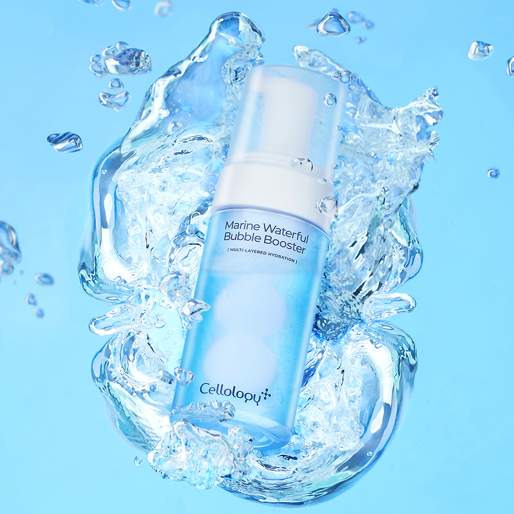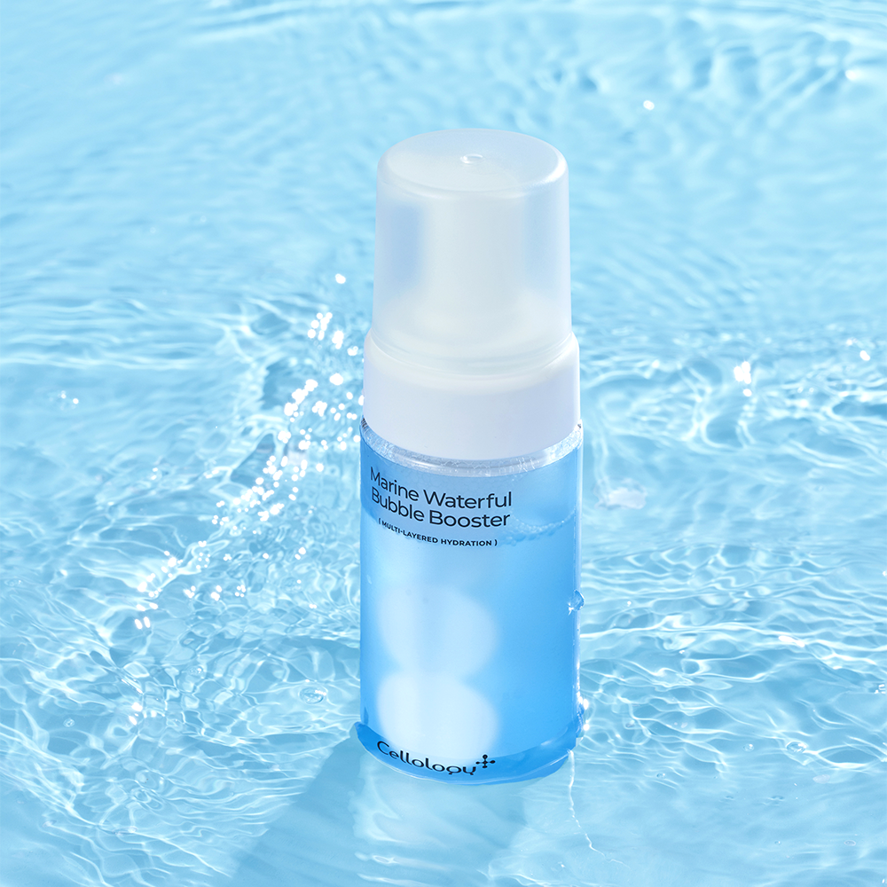 Cellology Marine Waterful Bubble Booster, a lightweight and invigorating skincare booster that instantly quenches thirsty skin. Designed to recharge skin with deep hydration and a cool, radiant finish, this booster is perfect for adding a refreshing step into your daily skincare routine.