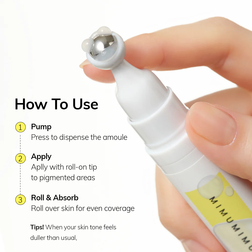 This powerful brightening roll-on ampoule helps fade dark spots, hyperpigmentation, and melasma while evening out skin tone. The lightweight formula absorbs quickly, delivering active ingredients directly to areas of concern for visible radiance and smooth texture.